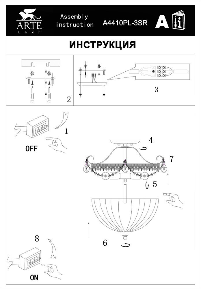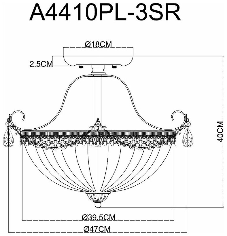 | Особенности | Возможность использования диммера. Изделие украшено подвесками из хрусталя. |