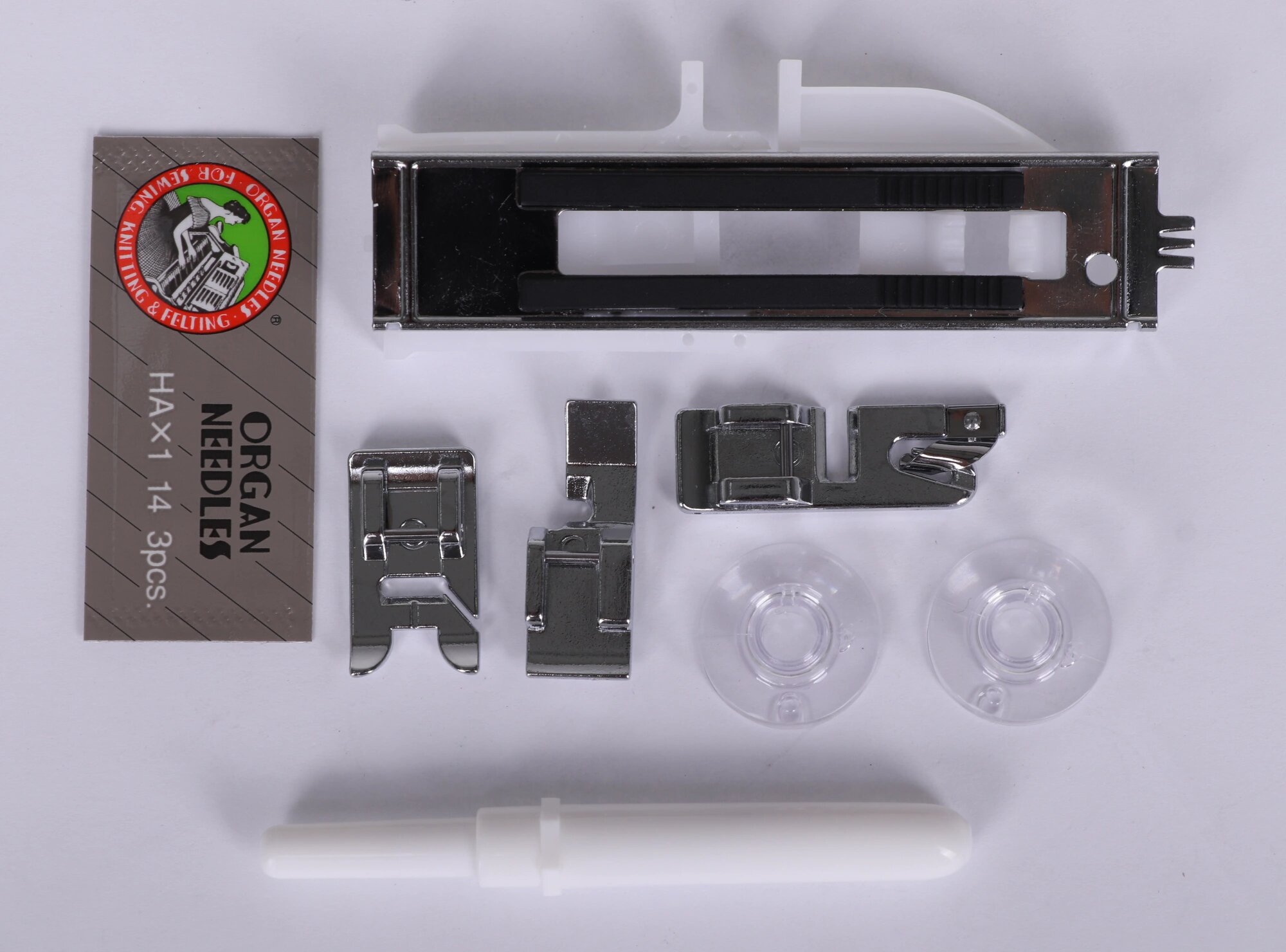 | Описание комплектации | Набор иголок Шпульки Вспарыватель Лапка универсальная Лапка для петли-автомат Лапка для вшивания молнии Лапка для штопкивышивки Лапка для подрубки (улитка 2 мм) |
