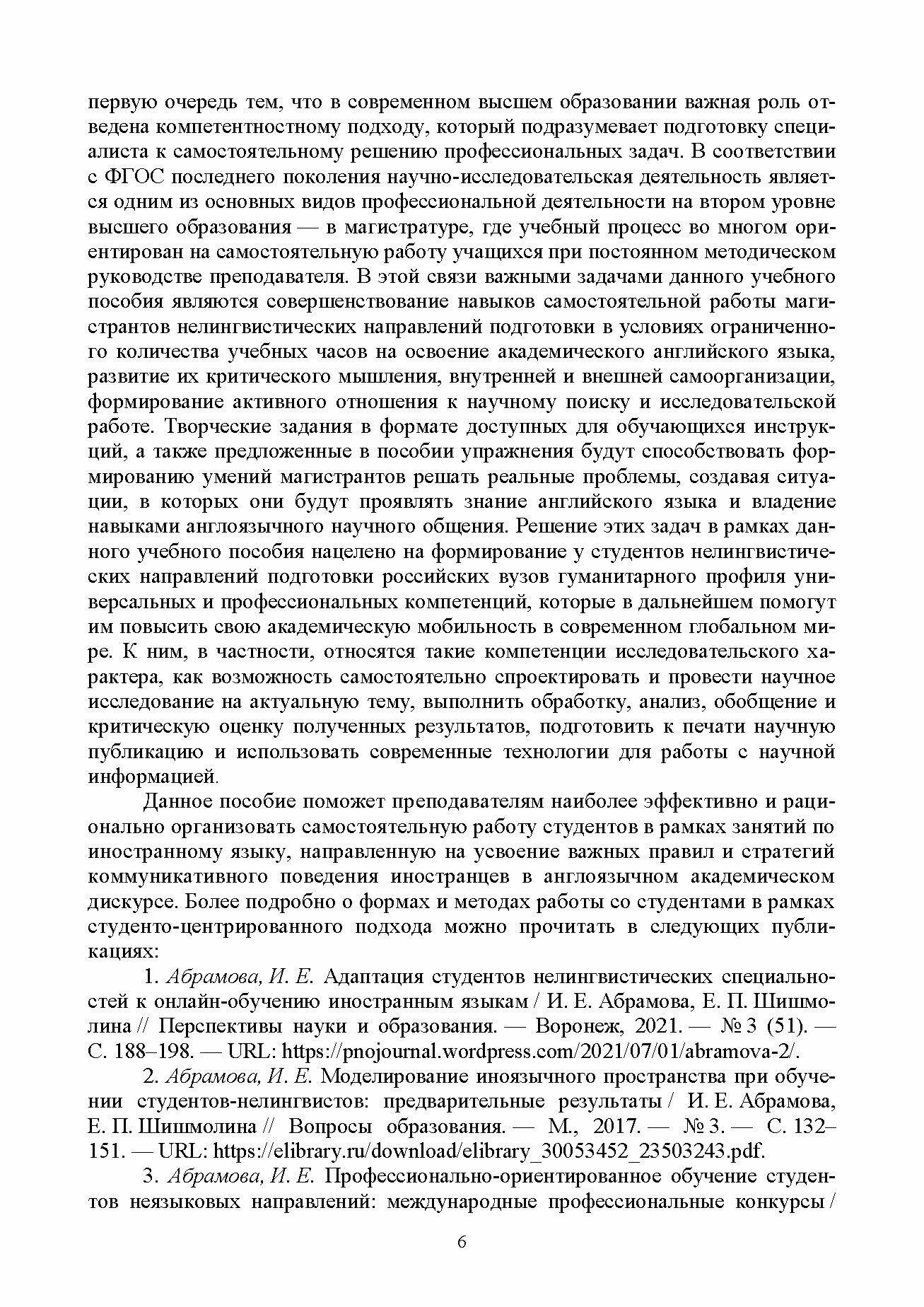 Учебное пособие предназначено как для магистрантов гуманитарного профиля, так и для аспирантов, так как для них предусмотрен годовой курс по английскому языку, в рамках которого они не только готовятся к кандидатскому экзамену, но и учатся писать качественные статьи, отвечающие требованиям высокорейтинговых международных журналов.