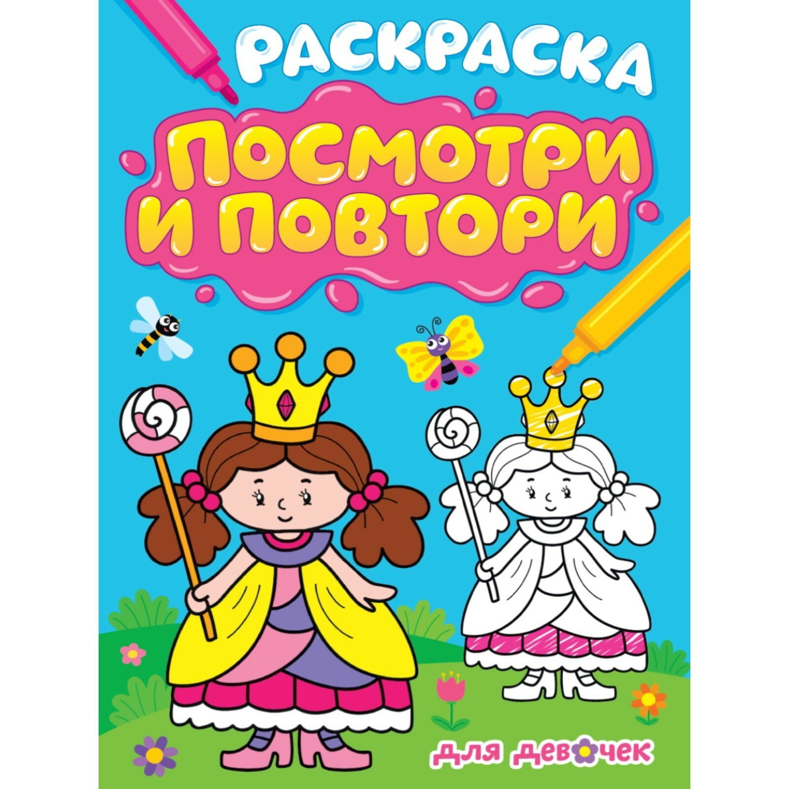 Раскраска. Посмотри и повтори. Для девочек (Кабирова Анастасия (редактор)); Проф-Пресс, 2022