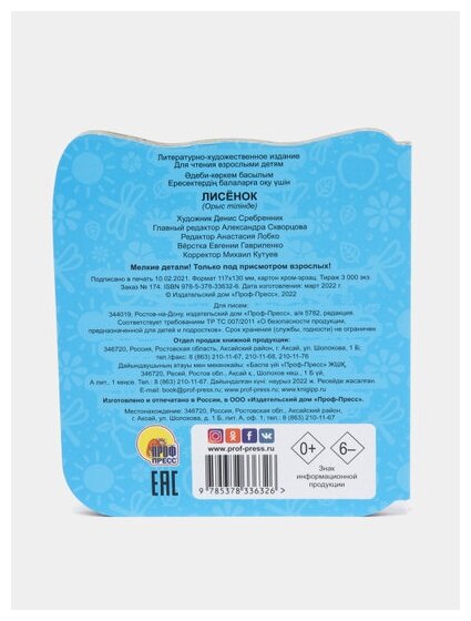 | Наименование модели | Книжка микро-глазки Лисёнок |