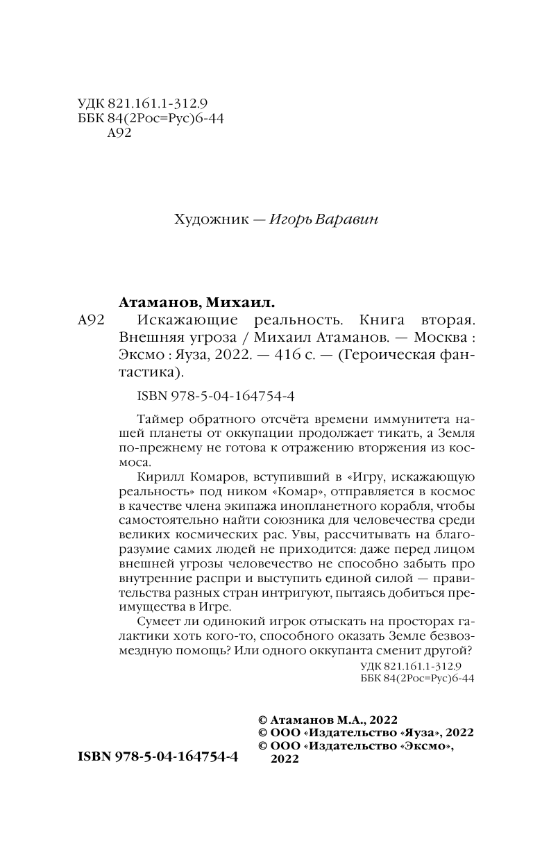 Искажающие реальность. Книга вторая. Внешняя угроза (Михаил Атаманов); Эксмо, Редакция 1, 2022