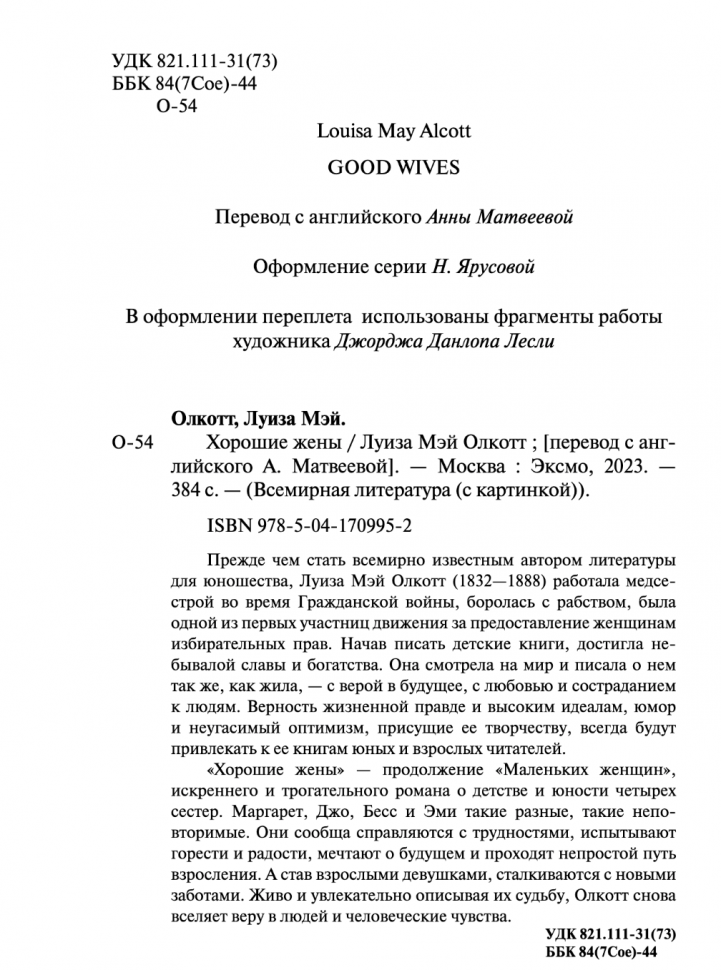 Книга: Хорошие жены (Луиза Мэй Олкотт); Эксмо, Редакция 1, 2023