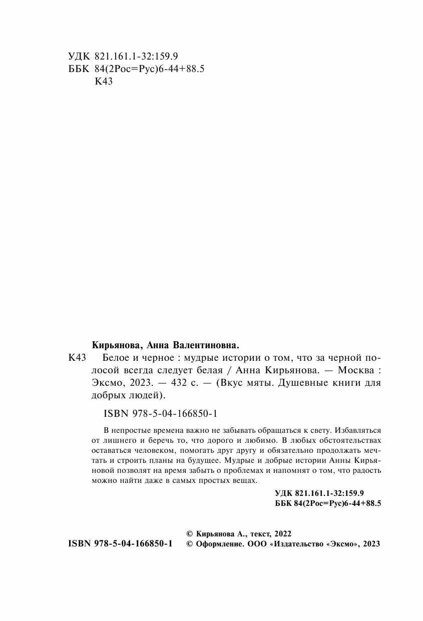 Белое и черное. Мудрые истории о том что за черной полосой всегда следует белая (Кирьянова Анна Валентиновна); ООО "Издательство "Эксмо", 2022
