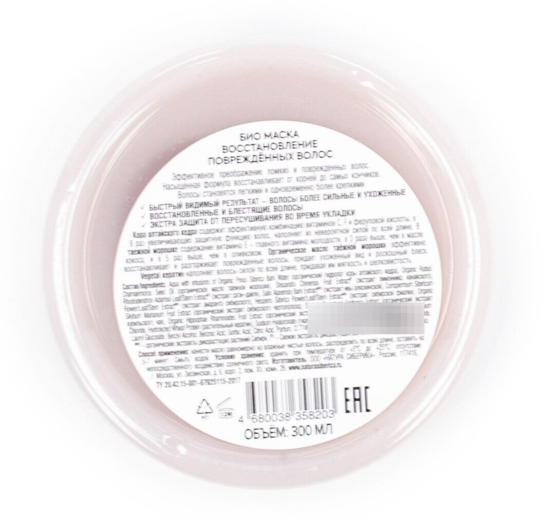 | Состав | Aqua with infusions of Organic Pinus Sibirica Bark Water (органический гидролат коры хакасского кедра), Organic Rubus Chamaemorus Seed Oil (органическое масло таежной морошки), Salix Alaxensis Bark ExtractWH (экстракт ивы аляскинской), Corispermum Sibiricum Flower/Leaf/Stem ExtractWH (экстракт амаранта сибирского), Hesperis Sibirica Flower/Leaf/Stem ExtractWH (экстракт сибирской фиалки), Organic Schizandra Chinensis Fruit ExtractFE (органический экстракт лимонника нанайского), Organic Rhododendron Adamsii Leaf/Stem ExtractFE (органический экстракт саган-дайля), Organic Silybum Marianum Fruit Extract (органический экстракт сибирского чертополоха), Organic Dasiphora Fruticosa Extract (органический экстракт курильского чая), Organic Hippophae Rhamnoides Fruit Extract (органический экстракт облепихи алтайской); Cetearyl Alcohol, Cetrimonium Chloride, Hydrolyzed Wheat Protein (растительный кератин), Guar Hydroxypropyltrimonium Chloride, Lauryl Glucoside, Benzyl Alcohol, Benzoic Acid, Sorbic Acid, Citric Acid, Parfum, CI 77492, CI 77491, CI 77499, Hexyl Cinnamal, Limonene, Linalool |