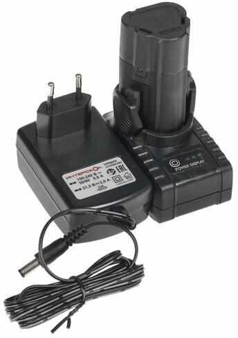 Описание комплектации | Шуруповерт Две аккумуляторные батареи Сетевое зарядное устройство Набор сверл и бит Инструкция по эксплуатации Пластиковый кейс |