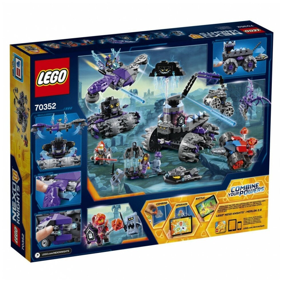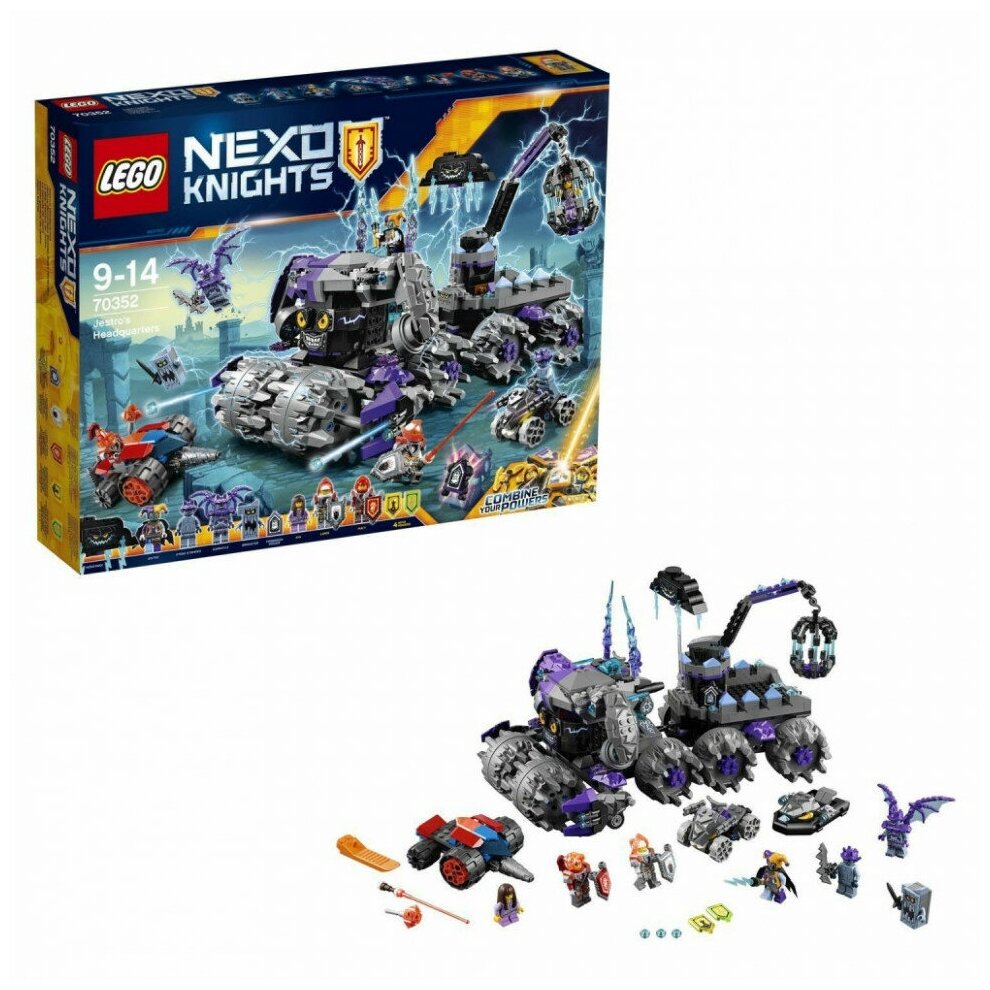 Lego Nexo Knights Штаб Джестро - набор, который сможет заинтересовать вашего ребенка. Ему предстоит объединиться вместе с отважными королевскими рыцарями для того, чтобы отразить атаку штурмового разрушителя Джестро. А для еще большей мощности будущий владелец сможет комбинировать эксклюзивные Nexo-Силы: «Удар ниндзя», «Заклинатель», «Сила музыки» и «Бурные аплодисменты», а также «Раскол земной поверхности». Lego Nexo Knights - современное и высокотехнологичное поколение рыцарей.