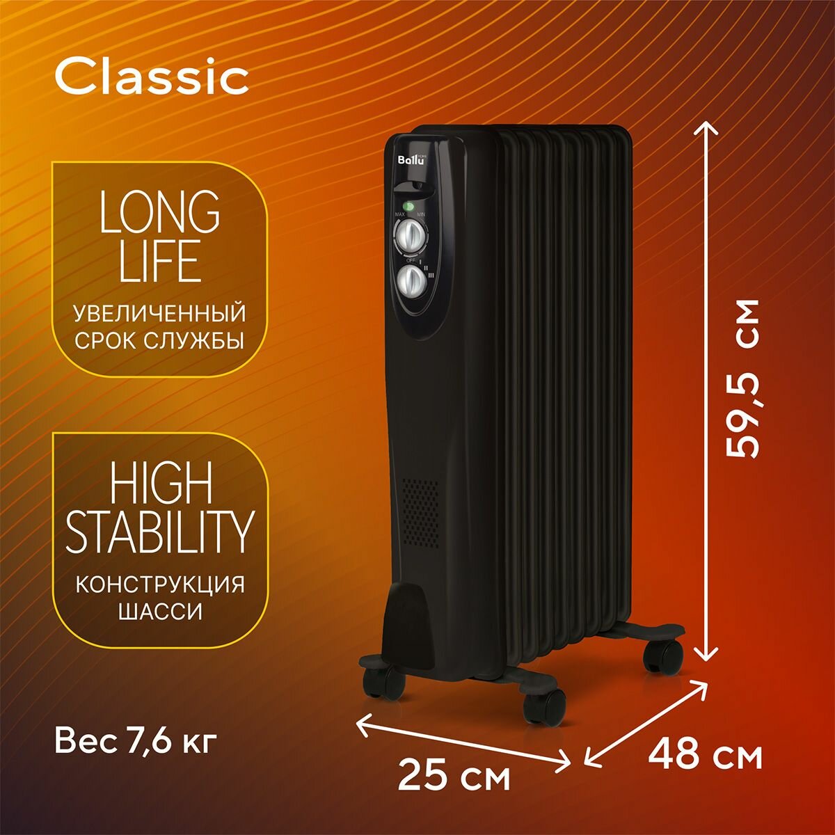 Радиатор масляный Ballu BOH/CL-11BRN 2200 (11 секций)