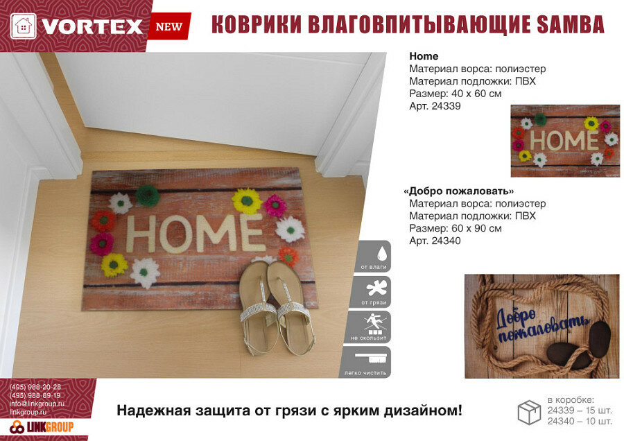 На сегодняшний день товар «коврик VORTEX Samba Добро пожаловать 60х90см влаговпитывающий полиэстр ПВХ (24340)» можно купить с кешбеком в 1 магазине: Яндекс.Маркет