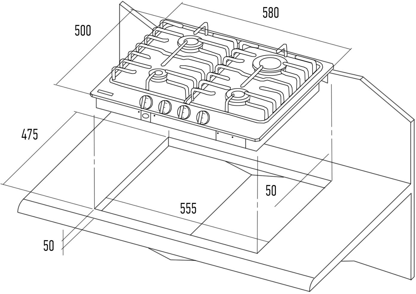 | Описание комплектации | Варочная поверхность, чугунные решетки 2 шт., горелки 4 шт., форсунки для баллонного газа. |