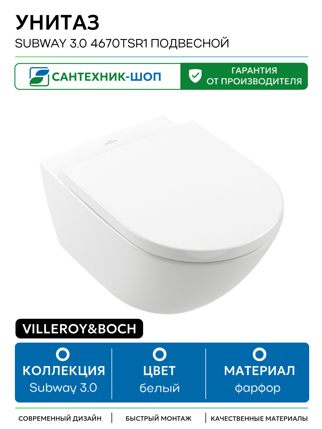 Сервис сравнения цен СкидкаГИД предлагает сравнить цены на товар «Подвесной унитаз Villeroy & Boch с сиденьем микролифт Villeroy&Boch Subway 3.0 4670TSR1»