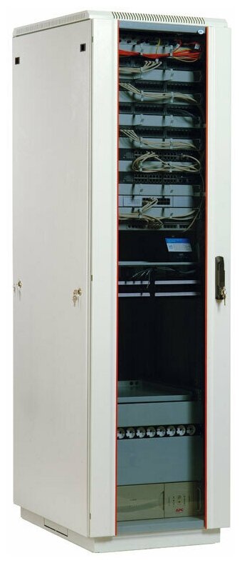 | Особенности | Класс защиты: IP20. Разборная конструкция. Легок в сборке. Дверь фиксируется усиленным точечным замком. Возможна установка двери как с правой, так и с левой стороны. Возможна установка двух вентиляторных модулей. Возможна установка поворотных роликов Вертикальные направляющие регулируются по глубине. |
