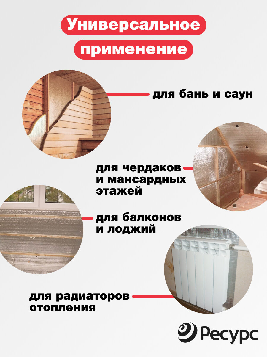 | Особенности | Благодаря основе из несшитого пенополиэтилена с закрытой ячеистой структурой, является отличным теплоизолятором. Обеспечивает дополнительную паро- и гидроизоляцию конструкции. Защищает строительную конструкцию от увлажнения. Тонкий и эластичный материал легко нарезается на полотна необходимых размеров, обеспечивая простоту монтажа. Материал подходит для применения в жилых помещениях, приятен на ощупь, не расползается на волокна. Варианты применения: Тепло-, звуко- и пароизоляция помещений с повышенной влажностью. Тепло-, гидро- и звукоизоляция трубопроводов, вентиляции и канализации. Подкровельная пароизоляция. Отражающий экран за радиаторами отопления. |
