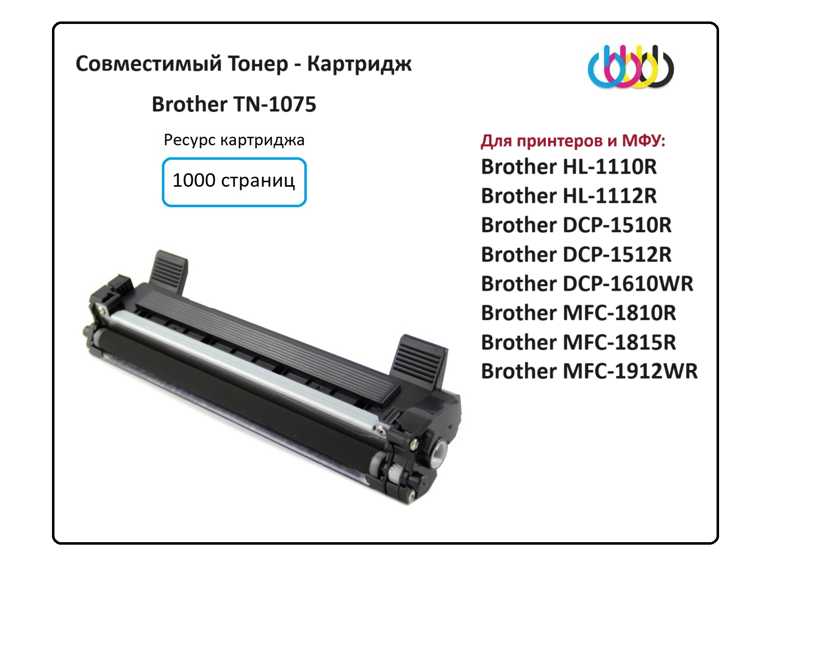 | Поддерживаемые картриджи | Картридж Brother TN-1075 |