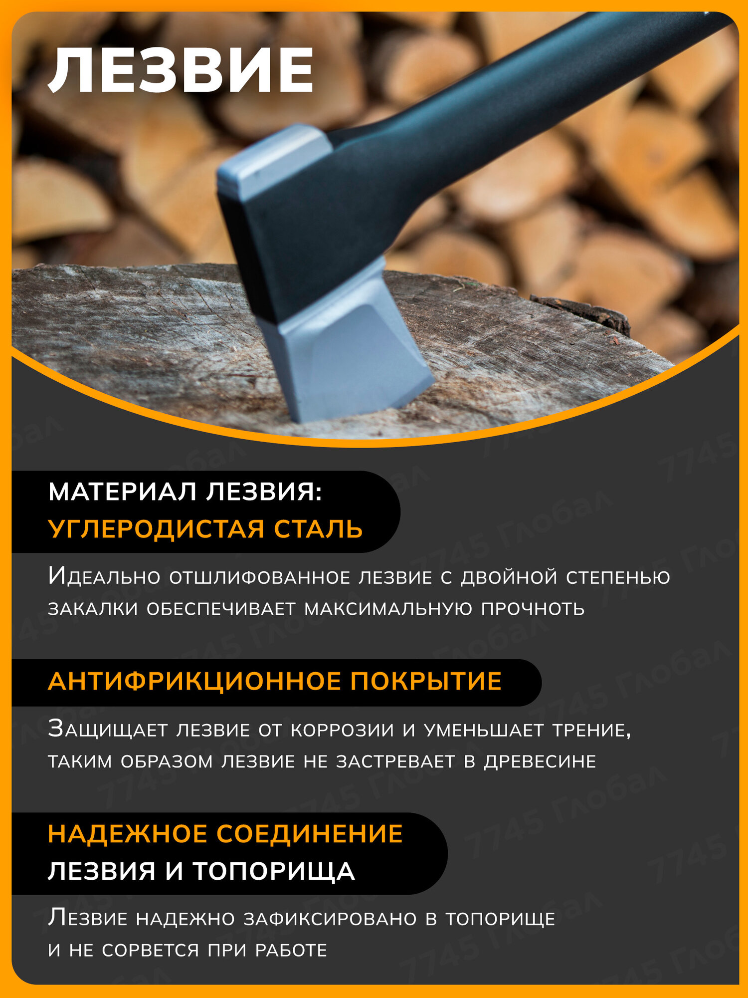 Сталь очень качественная, заточка заводская идет не плохая, легкий достаточно, центр тяжести рассчитан специально, чтобы было удобнее держать его в руках и рассчитывать силу удара, рукоять из очень прочного материала, специальное покрытие и форма позволяют колоть дрова намного быстрее, чем с обычными древними топорами.