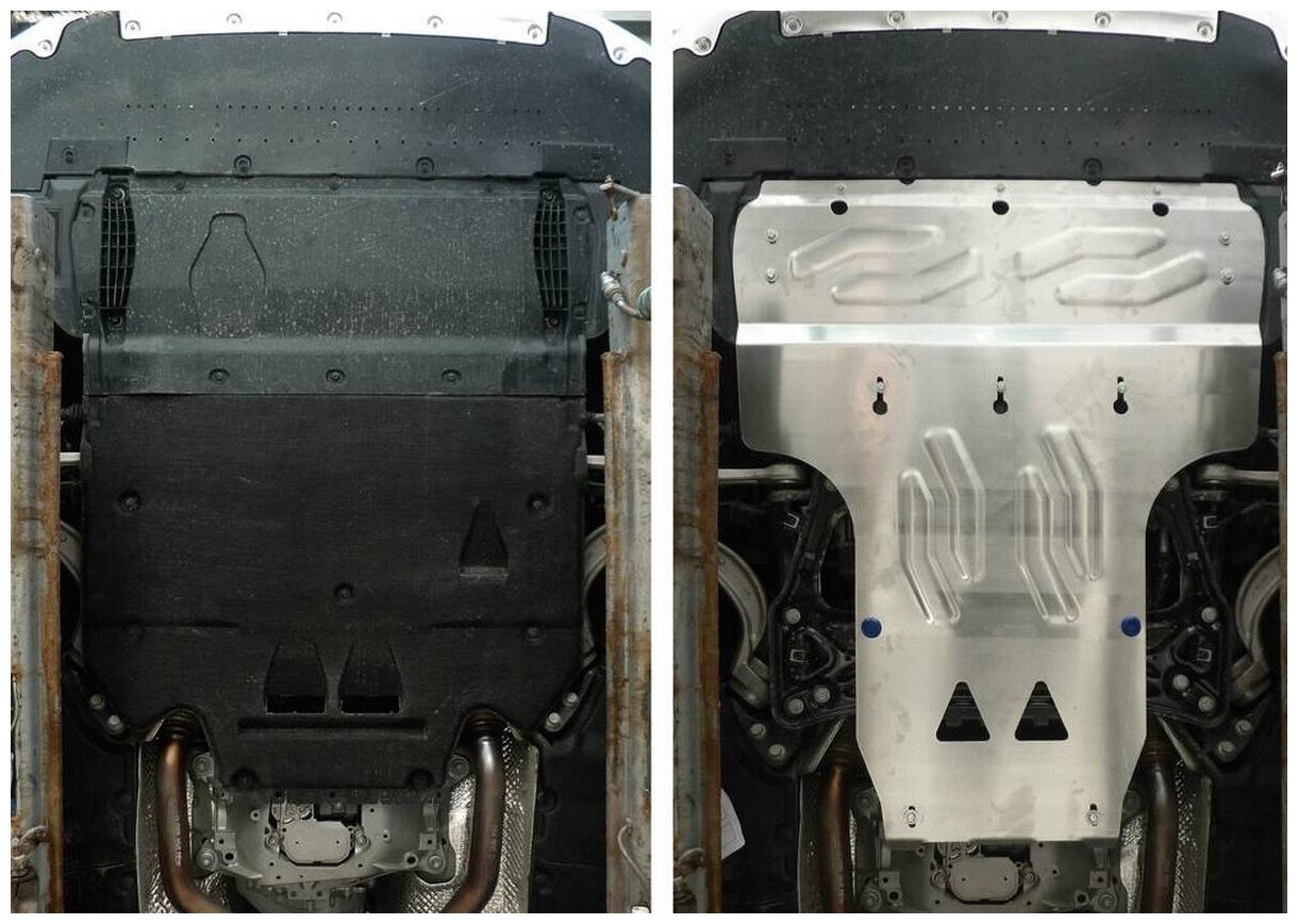 - Толщина алюминиевых защит в 2 раза толще стальных, а вес при этом меньше до 30%.