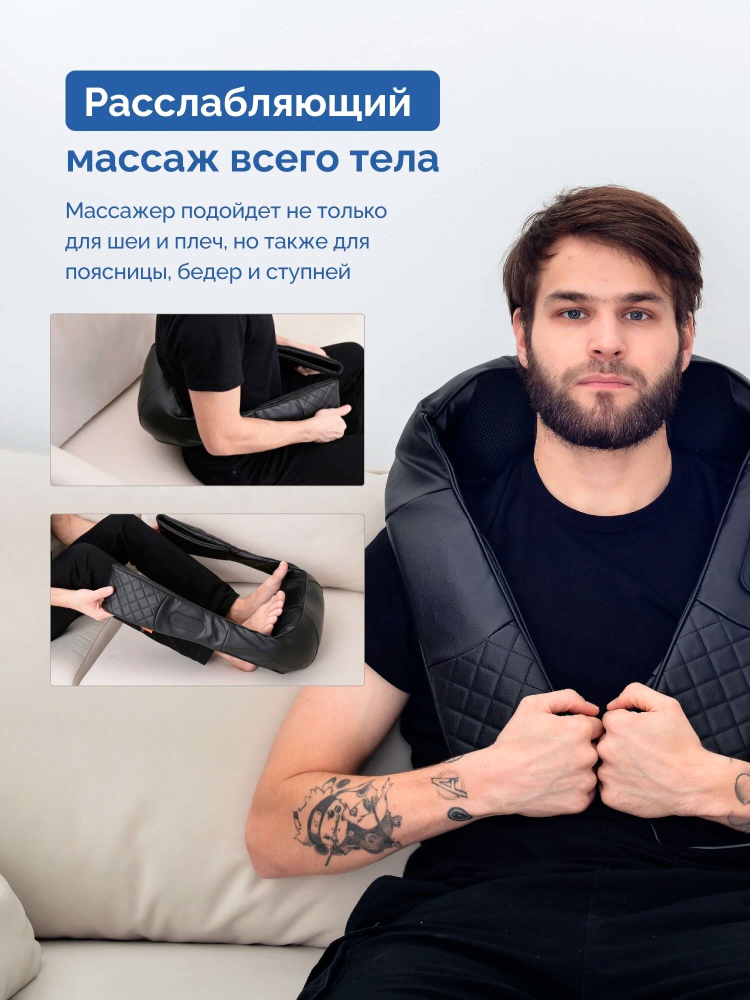 Мануальный массажер Kragen с функцией теплотерапии станет незаменимым помощником для тех, кому необходим профессиональный расслабляющий массаж не выходя из дома. Массажер предназначен для разминающего массажа шейно-плечевого отдела спины, поясницы, бедер и даже акупунктурного массажа стоп, устраняет стресс и затекание мышц. Функция теплотерапии, т.е инфоркрасного прогрева, усиливает циркуляцию крови и повышает эффективность массажа, благотворно влияет на состояние кожи и нервную систему. Вы почувствуете легкость и прилив энергии в теле после массажа. Возможность использовать массажер дома позволит Вам надолго забыть о напряженных мышцах и плохом настроении. В отличии от многих домашних массажеров имеет большее количество массажных роликов, их 8 шт! По четыре ролика на каждой, из двух массажных головок, именно это обеспечивает детальный, почти индивидуальный массаж. Прибор оснащен удобным управлением с функцией реверс для смены направления вращения массажных роликов, имеет таймер автоматического отключения после 20 минут работы, а удлиненные ручки помогают регулировать интенсивность массажного усилия. Выполнен из износоустойчивой экокожи, материал, который легко поддается уходу, достаточно протереть слегка влажной тряпочкой, смоченной в мыльном растворе. Подходит абсолютно для всех!