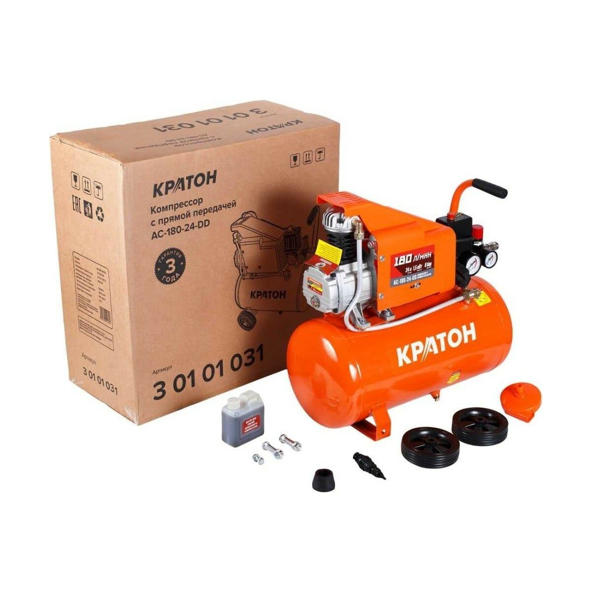 Компрессор с прямой передачей Кратон AC-210-24-DD 3 01 01 032 обеспечивает эффективную работу различного пневматического инструмента. Широко используется в автомастерской для накачки шин, на даче и строительной площадке во время проведения ремонтных работ и многое другое. Устройство оснащается горизонтальным ресивером объемом 24 литра. В днище агрегата предусматривается специальный кран для быстрого и удобного слива конденсата. Компрессор питается от однофазной сети.