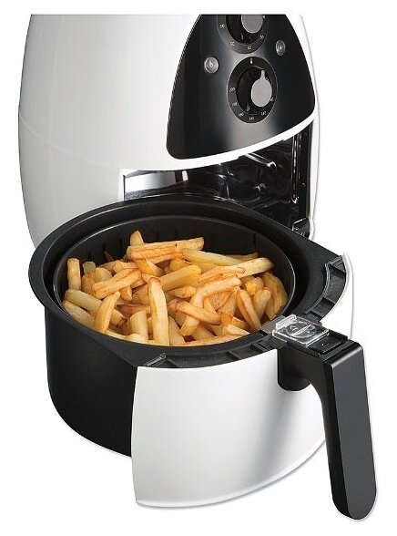 | Прочие особенности и свойства | Выдвижная и съемная корзина для жарки, емкостью 2 литра Специальный разделитель корзины, позволяет готовить два блюда одновременно Механический таймер на 60 минут Корзина для жарки пригодна для мытья в посудомоечной машине Корпус с двойными стенками Противоскользящие ножки |