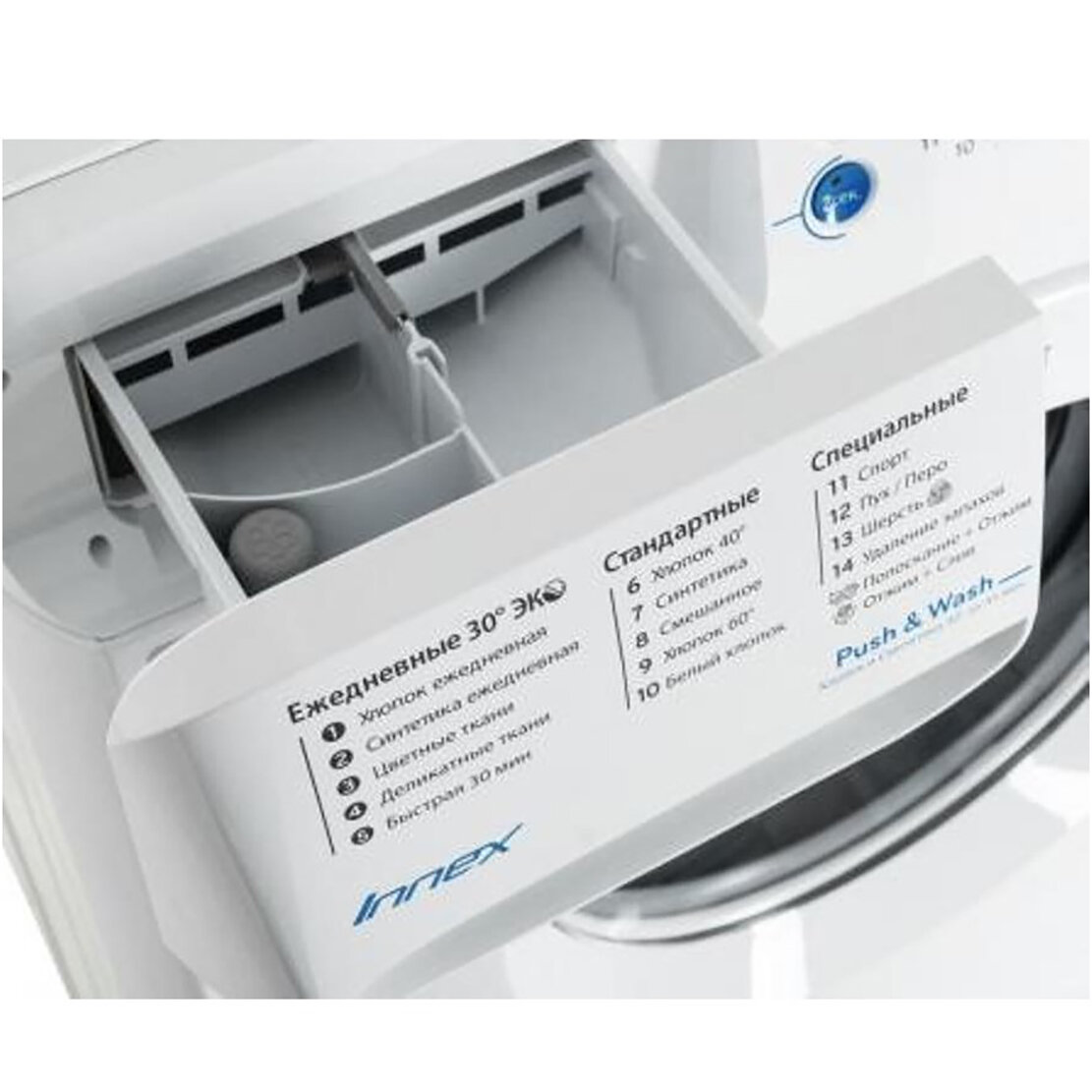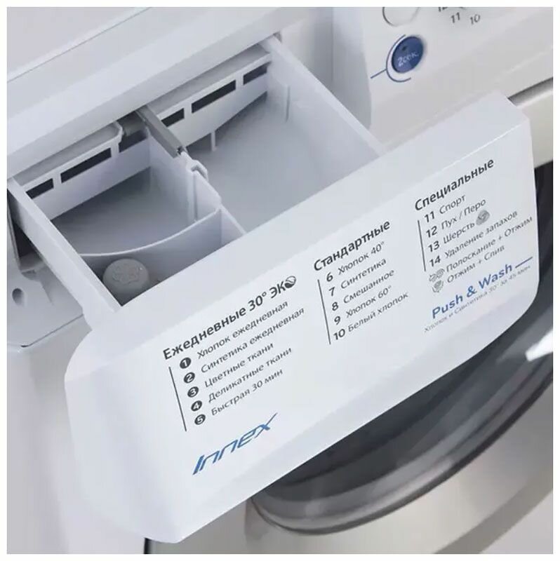 | Перечень программ | стирка деликатных тканей, экономичная стирка, предотвращение сминания, стирка спортивной одежды, стирка пуховых вещей, супер-полоскание, быстрая стирка, предварительная стирка, программа удаления пятен |