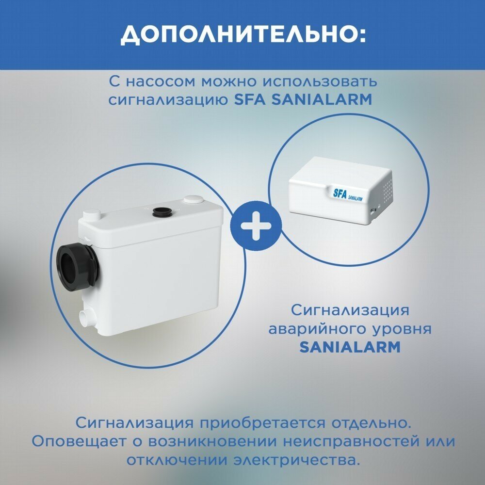 SFA представляет собой очень компактную систему принудительной канализации бытового применения, устанавливаемую за экраном для подвесного унитаза с возможностью подключения душевой кабины. Канализационная установка выполнена в современном дизайне, имеет высокий уровень производительности и отличные технические характеристики, надежна и безопасна в эксплуатации. Плоская конструкция насоса позволяет встраивать его непосредственно в стену, что экономит свободное пространство и не нарушает интерьер помещения.