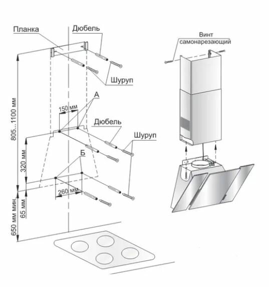 Установка воздуховода для кухонной вытяжки