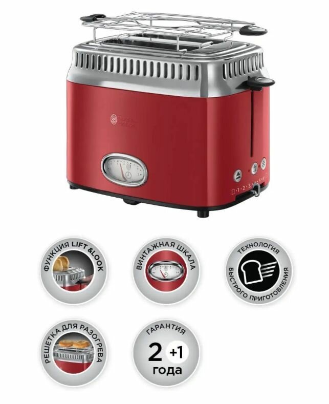 - Тостер Russell Hobbs Retro 21680-56 красный