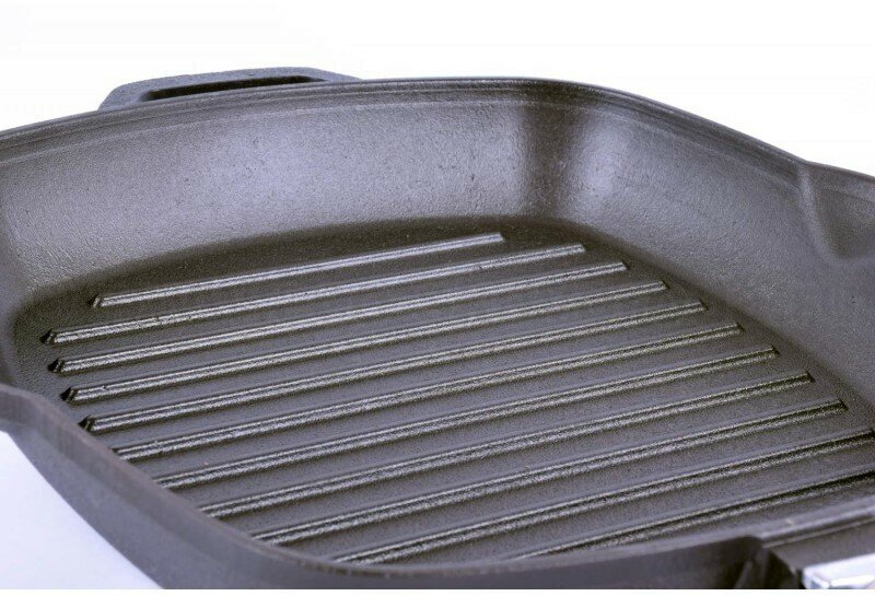 Купила эту сковороду и сразу решила проверить в приготовлении стейка. Сковорода чугунная, тежеловатая., На мясе хорошо проявляются полосы ,делала и клетку. Давно хотела приобрести сковороду гриль,и, купив эту осталась очень довольна.