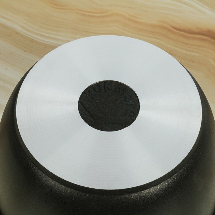 Кастрюля Kukmara кастрюля 4л К41аДля нанесения антипригарного покрытия используется немецкое антипригарное покрытие «Greblon — New Tec» фирмы Weilburger Coatings (Германия). АП покрытие, упрочненное керамикой, позволяет достичь высокую стойкость к царапинам и истиранию, обеспечивает долговременную защиту поверхности благодаря улучшенной технологии системы связующ их.Благодаря толстостенному корпусу, отлитому вручную, посуда с антипригарным покрытием обладает всеми достоинствами классической посуды из литого алюминия: долгим сроком службы и устойчивостью к высоким температурам, способностью равномерно распределять тепло и сохранять его в течение долгого времени. Толщина стенок и дна от 4,5 до 6 мм исключает деформацию корпуса изделий.Для нанесения АП покрытия завод использует метод напыления. Метод напыления предназначен для нанесения антипригарных покрытий на литейные формы- на посуду более высокой ценовой категории. Антипригарное покрытие, наносимое данным методом, отличается высокой надёжностью и долговечностью.Проточка необходима для улучшения теплопроводности посуды (без проточки дна посуда дольше нагревается, т.к. любое покрытие уменьшает степень теплопроводности алюминия). К тому же проточка дна позволяет использовать посуду как на традиционных газовых, электрических, так и на стеклокерамических плитах. На дне каждого изделия имеется логотип «Kukmara».Литая толстостенная посуда обладает предельно высокой теплопроводностью и способностью равномерно распределять тепло по всей поверхности изделия. Литой толстостенный корпус также обеспечивает эргономичность - длительное сохранение тепла на изделии.