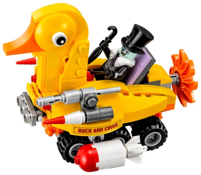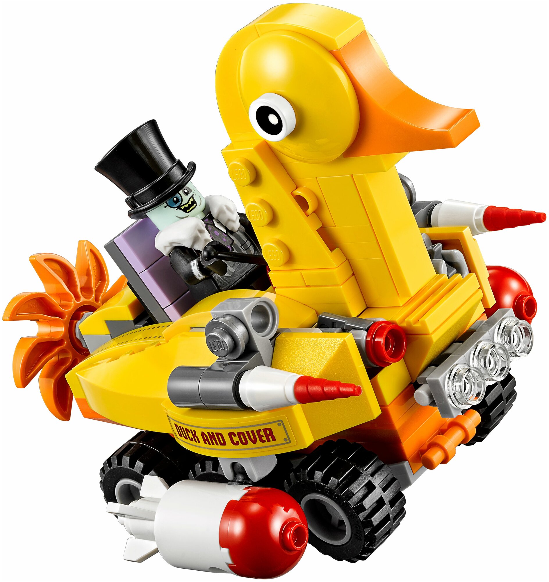 LEGO Batman Movie Нападение на Бэтпещеру - набор, который сможет заинтересовать юного поклонников легендарного комикса и фильма. Бэтмен и представить себе не мог, что банде безумных злодеев придет в голову напасть на его убежище, поэтому его очень сильно удивило их появление, которое он смог зафиксировать при помощи своего компьютера в командном центре. Для «дорогих» гостей стоит выбрать соответствующий костюм: ныряльщика, для суперзащиты или просто ограничиться специальным бэтрюкзаком. Для гвардии отморозков припасено специально оружие в виде ракет с пружинным механизмом и шипометов, но не упускай из виду автомобиль в виде утенка: он совсем не прост, как кажется.