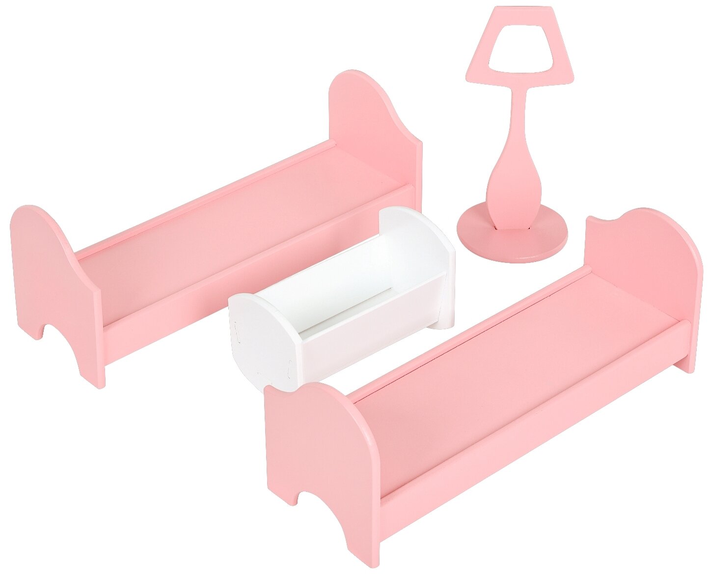 | Состав набора | Раковина; Унитаз; Стол; Стул 2 шт.; Кухонная плита; Мойка; Диван; Журнальный столик; Открытый шкафчик; Часы; Настольная лампа; Кровать 2 шт.; Колыбель для куколки-ребёнка (до 15 см); Торшер; Качели рассчитанные на 2 куклы |
