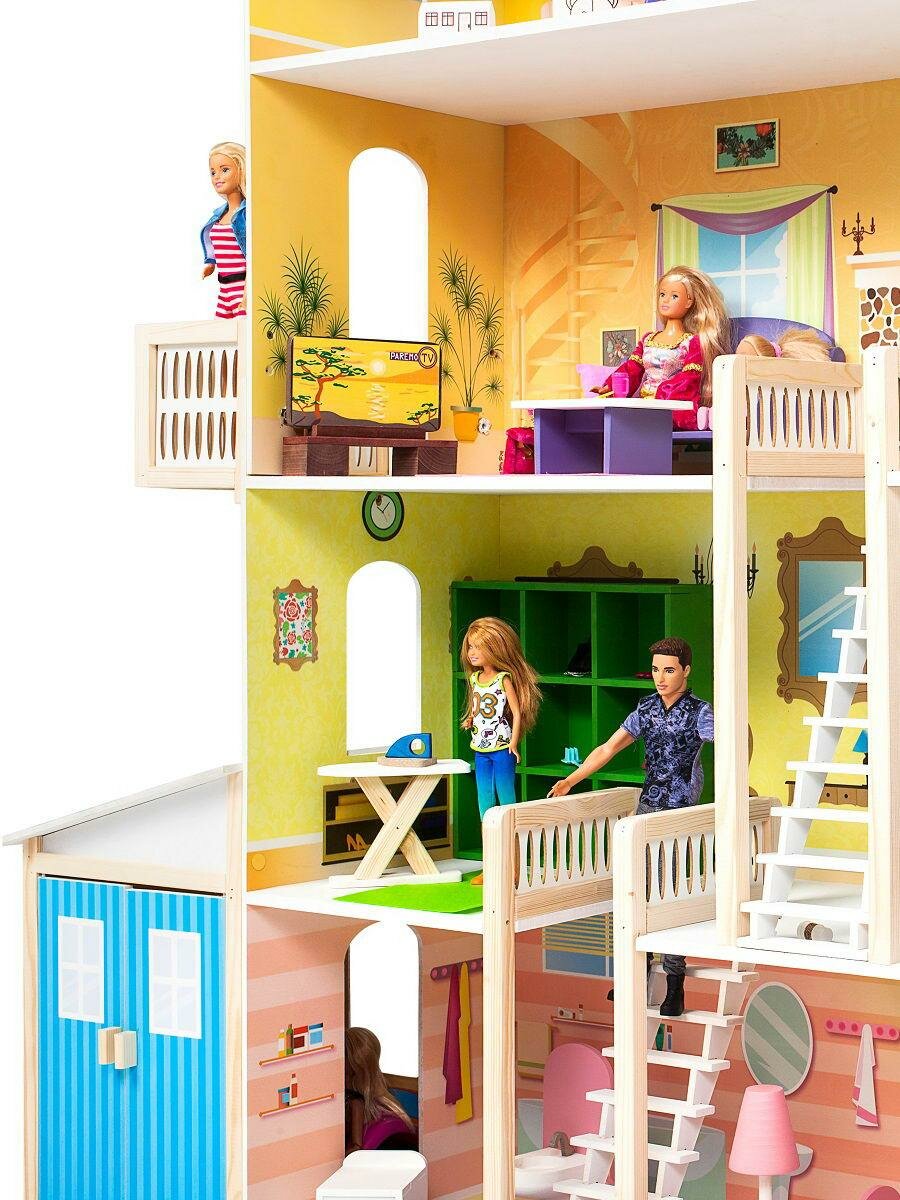 - Большой игрушечный дом для кукол «Лира» частично открытый (задняя стенка глухая, все игровые зоны с лицевой стороны полностью доступны для игры)