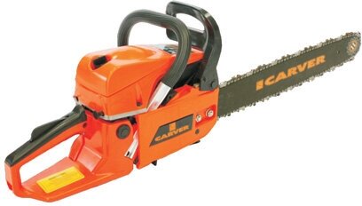 Бензиновая цепная пила Carver предназначена для проведения продольной и поперечной распиловки древесных материалов, спиливания веток, заготовки дров и других работ по пилению на приусадебном участке. Она выгодно отличается от своих электрических аналогов за счет большой мощности, автономности и отсутствия привязки к источнику питания, а также электробезопасностью.