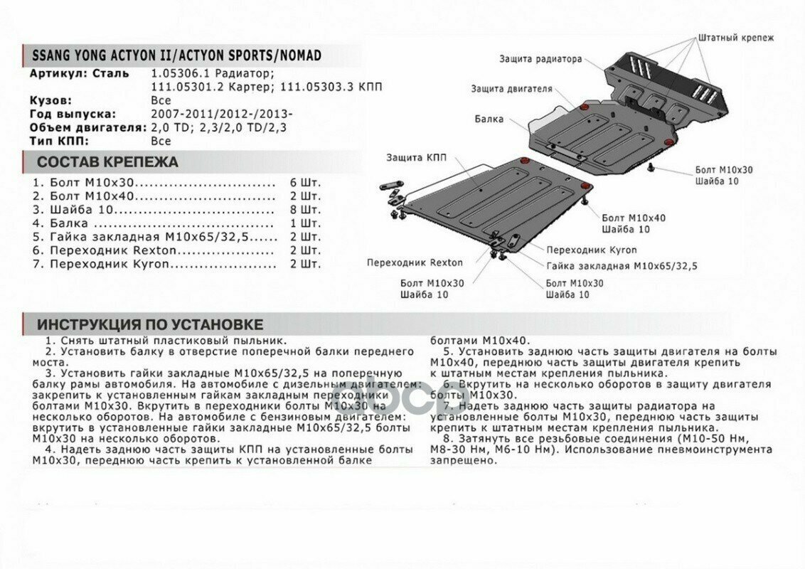 Сервис сравнения цен СкидкаГИД предлагает сравнить цены на товар «Защита КПП Автоброня Ssang Yong Actyon II/Actyon Sport/Kyron II/Nomad/Rexton II сталь 2мм 111.05303.3»