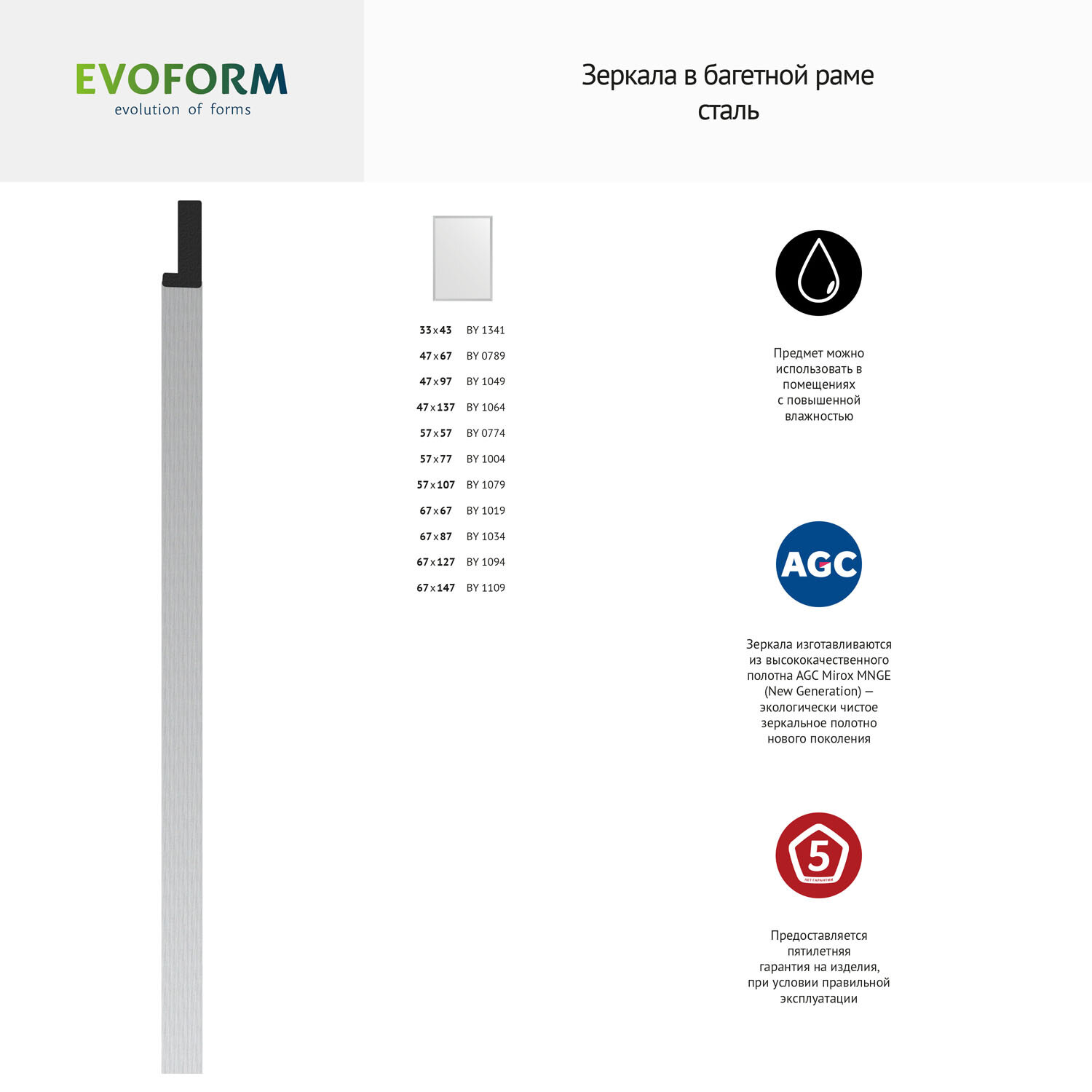 Зеркало в багетной раме 46х136см; Цвет/размер багета: Сталь 2 см Evoform BY 1064