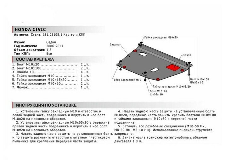 | Комплектация | защита - 1 шт., комплект крепежа, инструкция по установке, упаковка |