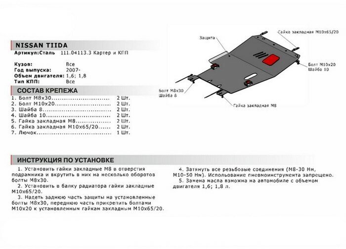 - Защита двигателя Ниссан Тиида. Защита картера Nissan Tiida. Tuning. Тюнинг запчасти. Обзор.