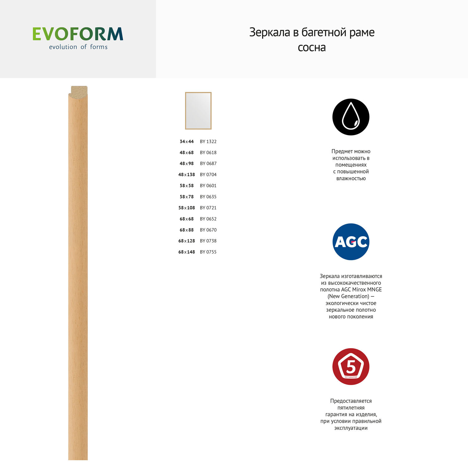 Зеркало в багетной раме 67х127 см; Цвет/размер багета: Сосна 25 см Evoform BY 0738