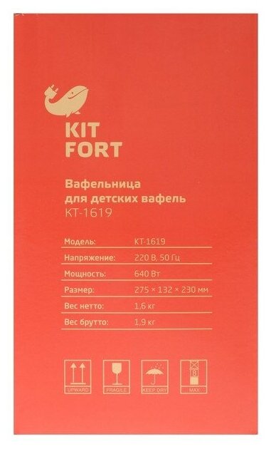 | Особенности | Электрическая вафельница для детских вафель КТ-1619 поможет испечь вафли или печенье для детей в виде фигурок животных. |