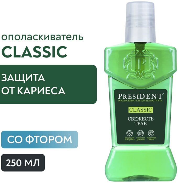 | Состав набора | Ополаскиватель для рта President Classic Свежесть трав 250мл |