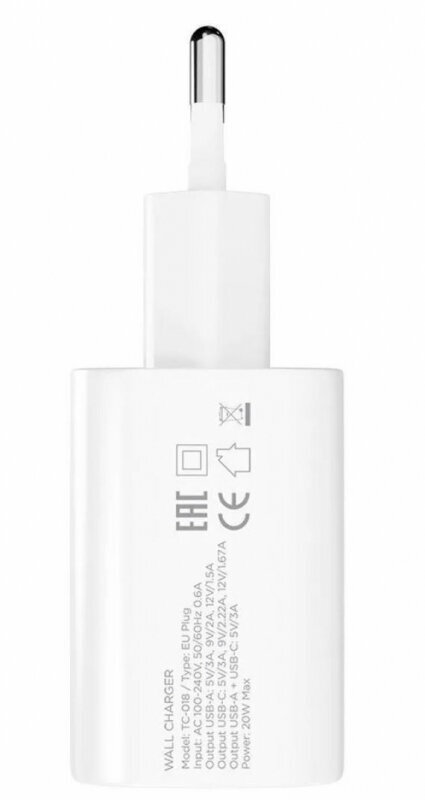 - Модель: USB-C+USB-A, PD, QC 20W белый