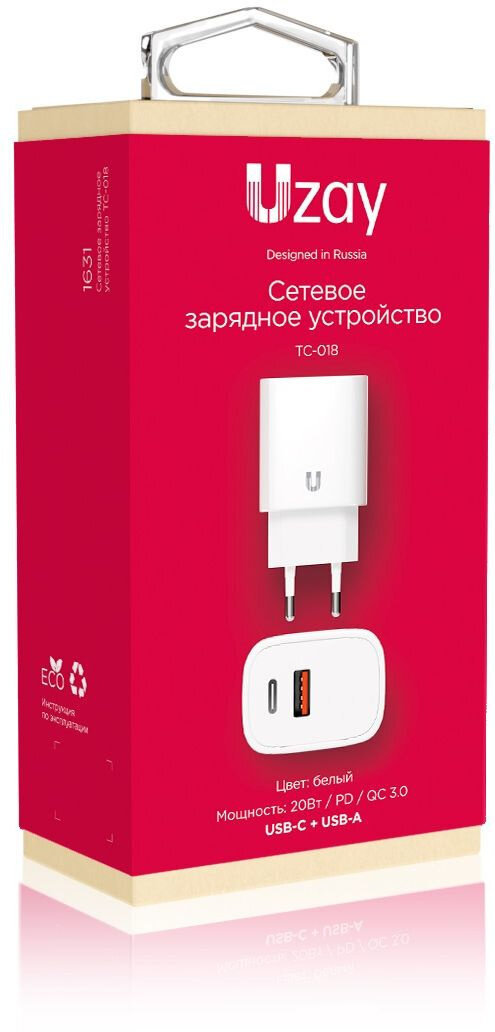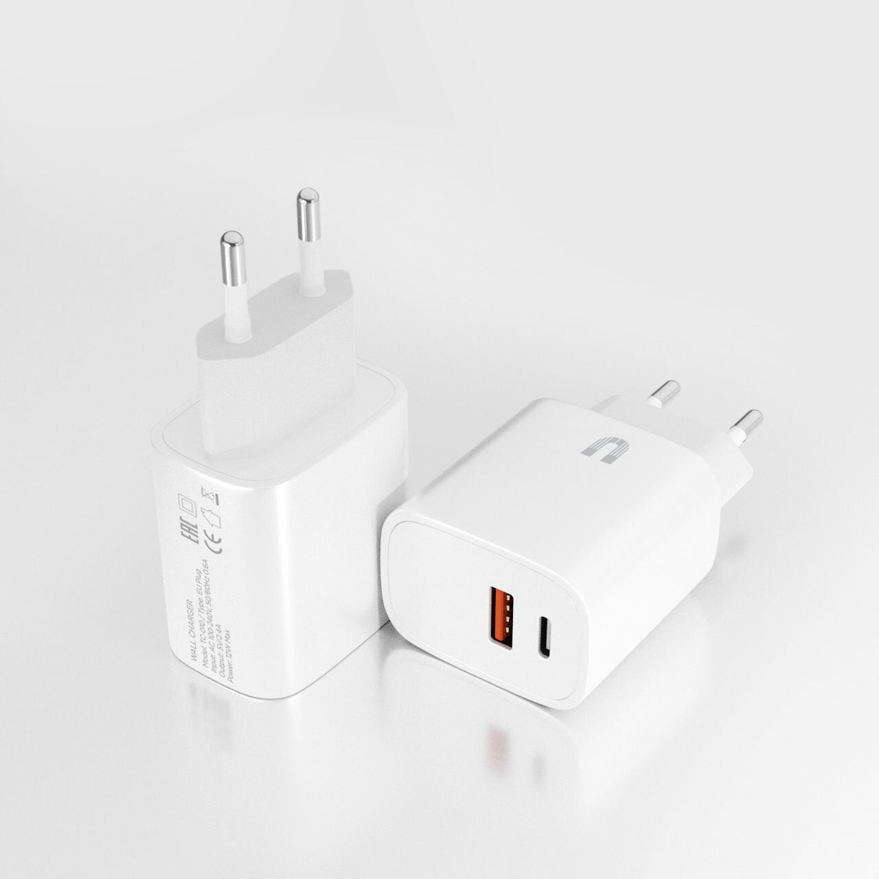 Зарядное устройство сетевое Uzay Adapter 20W белый USB-C+USB-A, PD, QC 20W белый