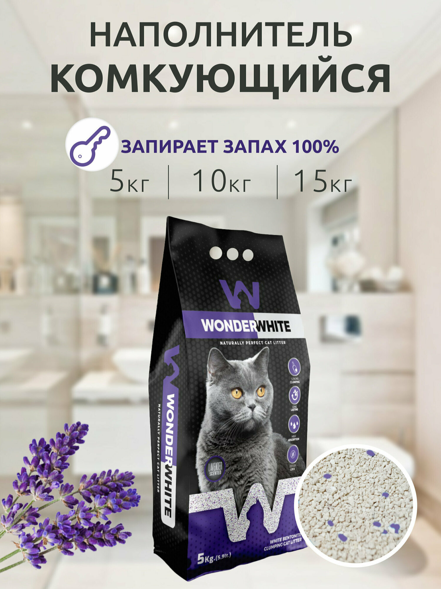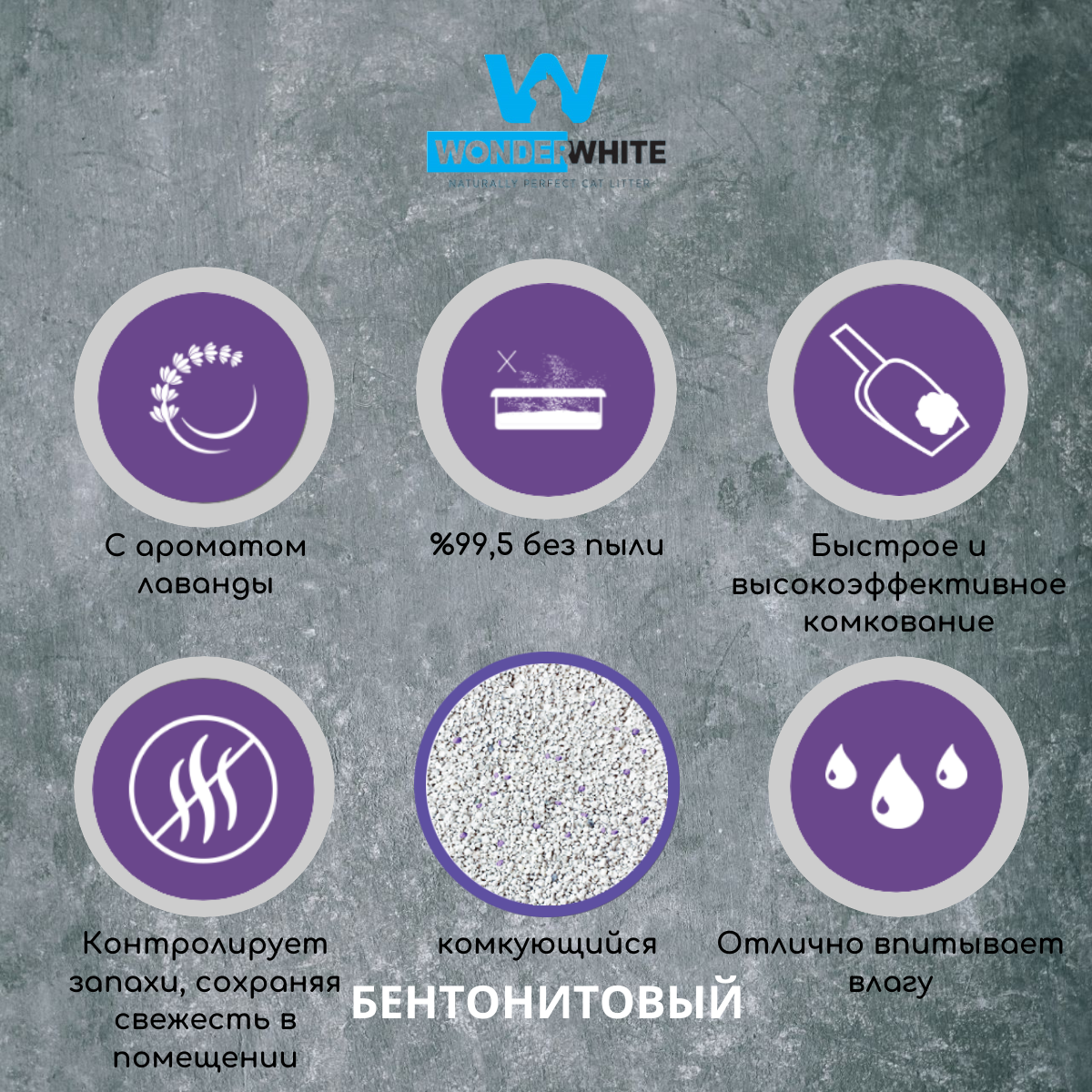 Наполнитель Wonder White Lavender c ароматом лаванды комкующийся бентонит 153кг