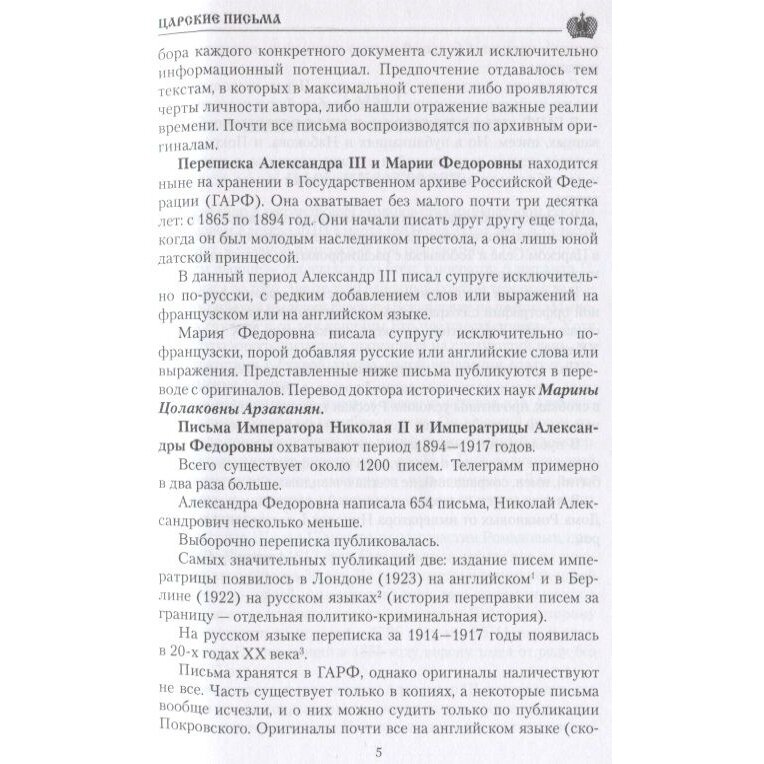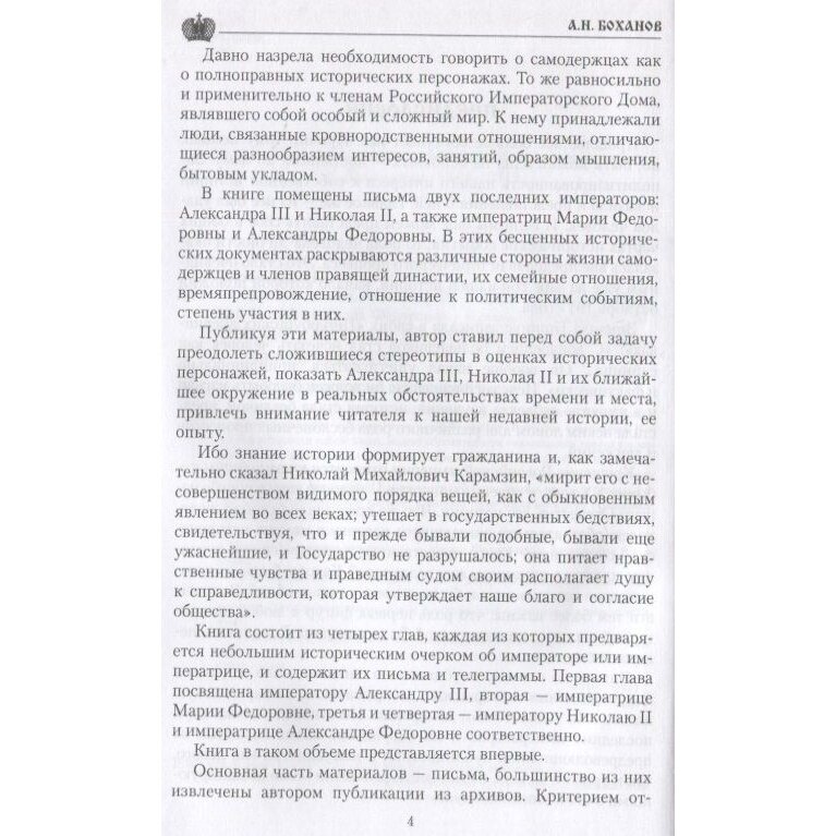 В книге помещены письма двух последних императоров: Александра III и Николая II, а также императриц - Марии Федоровны и Александры Федоровны.