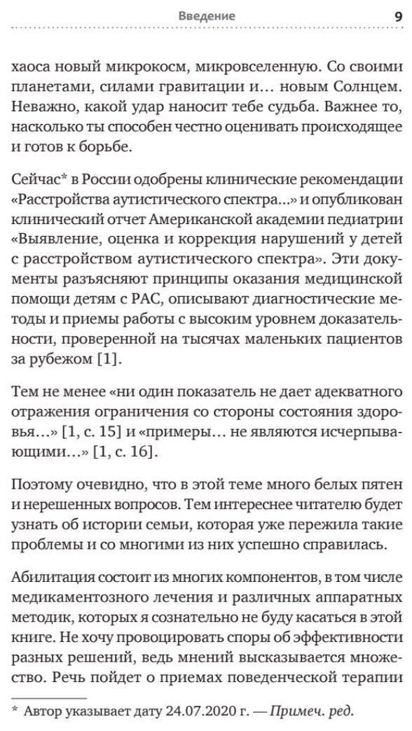 Эта книга рассказывает о превращения неговорящего, недоразвитого ребенка с диагнозом РАС в ребенка "уровня условной нормы", что означает возможность вести нормальную жизнь. Обычная семья, живущая в одном из провинциальных городов России, прошла этот невероятный путь за пять лет.