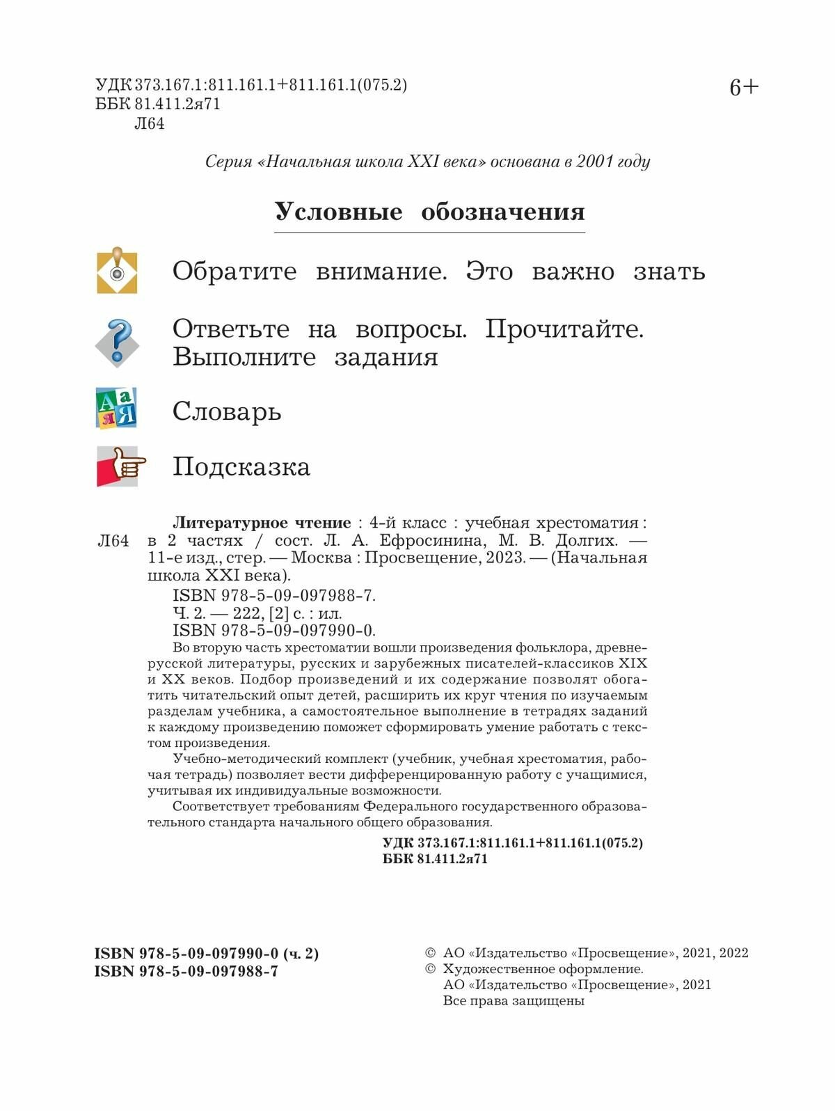Литературное чтение. 4 класс. Хрестоматия. В 2-х частях (Ефросинина Любовь Александровна, Долгих Марина Викторовна); Просвещение/Вентана-Граф, 2021