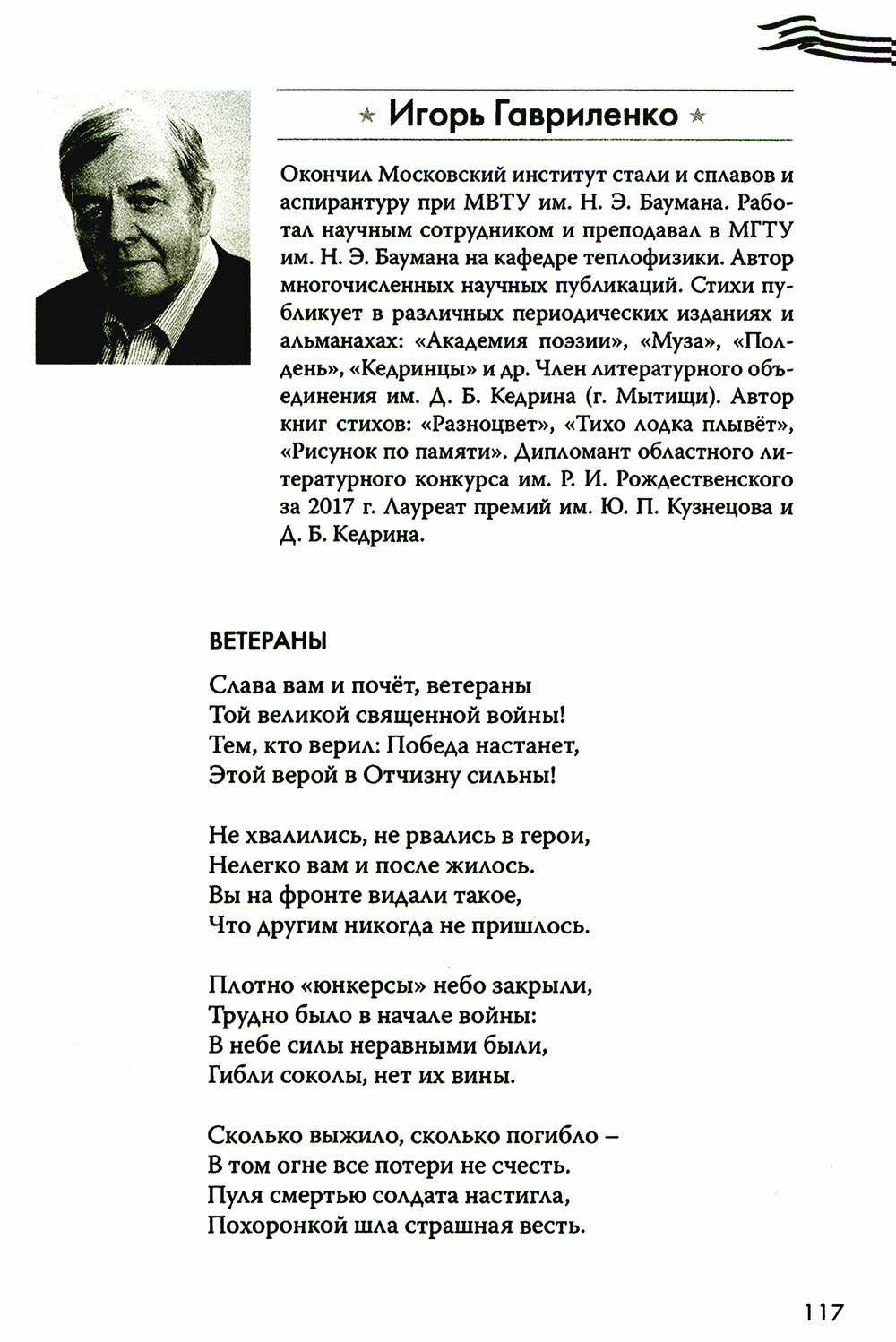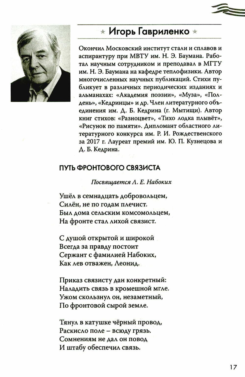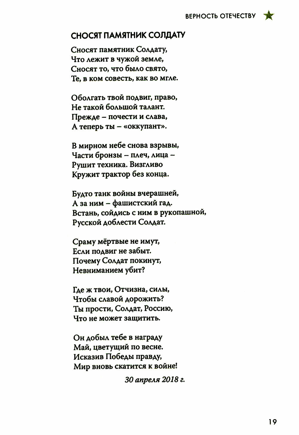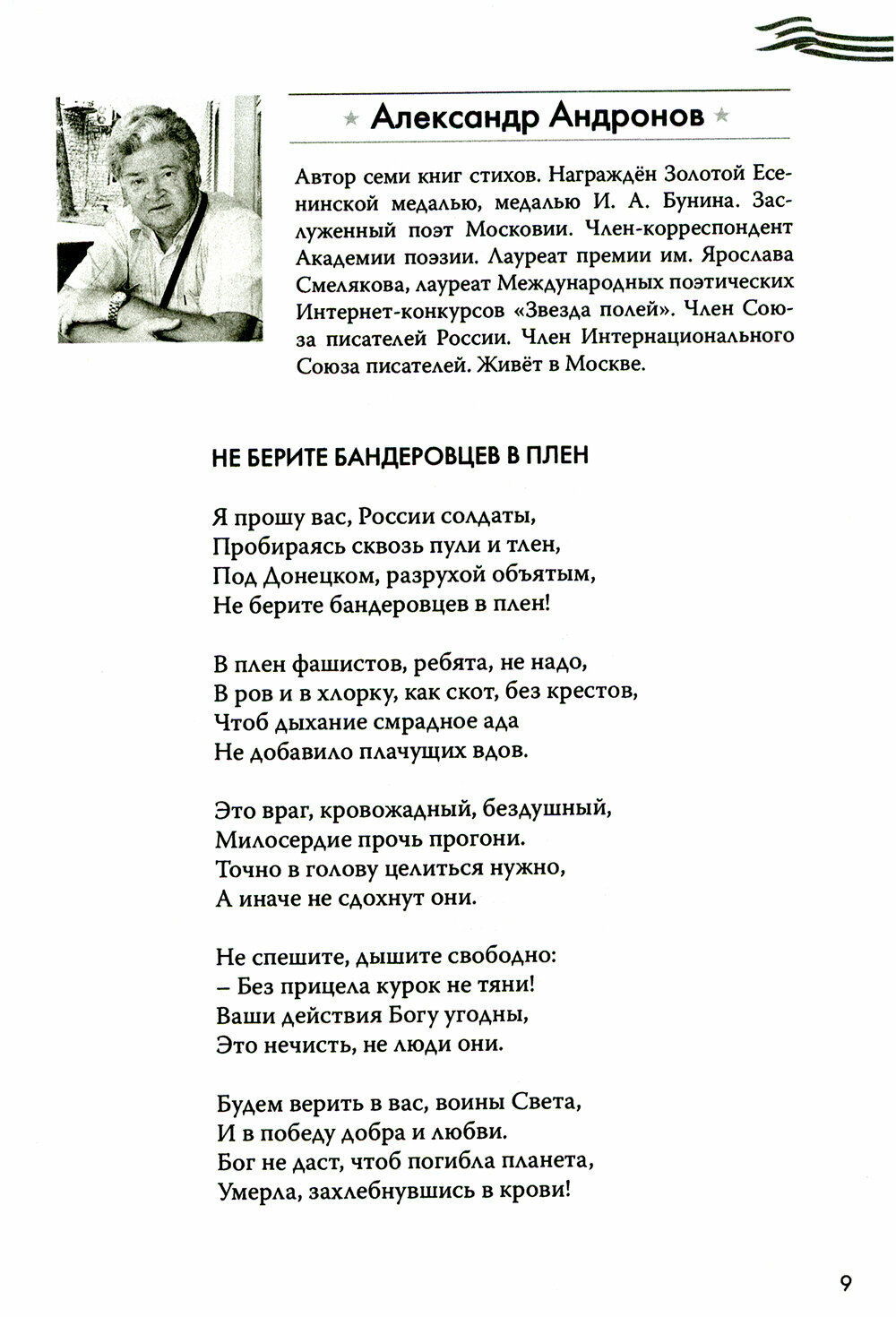 Перед Вами книга стихов, посвященных Великой Победе советского народа над фашизмом, беспримерным подвигам наших воинов-освободителей, прошедших с тяжелыми боями от Москвы до Берлина. Стихи, написанные современными авторами, воспевают неувядаемую славу России, ее доблестных защитников, верных своему Отечеству и отстаивающих идеи Мира, в котором нет фашизма и в котором каждый народ имеет право говорить на своем родном языке, данном ему с рождения. С полной самоотверженностью советские воины вершили мировую историю в войне с гитлеровскими захватчиками 1941-1945 гг. С неменьшим мужеством и отвагой внуки и правнуки советских воинов-победителей воюют с воскресшим фашизмом в наши дни, по-прежнему стоя на страже рубежей своей Родины и мира на Земле. Произведения, вошедшие в эту книгу, дают важные жизненные ориентиры, вдохновляя россиян быть достойными защитниками и гражданами своей страны, какими были их непобедимые предки, прославившие Россию на века! Воспевать Отчизну и ее доблестных сыновей - это великая миссия, данная писателям и поэтам России свыше! Ольга Шевчук, главный редактор