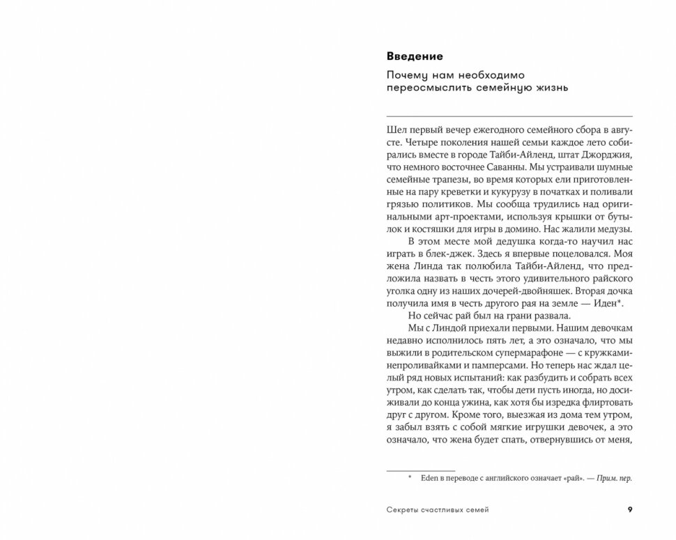 Взяв за основу первую часть эпиграфа Л. Толстого к роману «Анна Каренина» — «Все счастливые семьи похожи друг на друга...», автор задался вопросом: что именно счастливые семьи делают правильно и как остальным этому научиться?Он разложил по полочкам семейную жизнь, выделив то, что делаем все мы, — любим, ссоримся, едим, играем, дурачимся, тратим деньги, принимаем жизненно важные решения, — и постарался найти способы оптимизировать эти аспекты. Автор выбрал ярчайшие примеры, разыскал умнейших людей и самые органичные семьи, которые только мог найти, чтобы собрать лучший опыт, имеющийся на сегодняшний день, и создать своеобразное руководство для счастливых семей. Может, не все из более чем 200 советов автора подойдут каждому из нас, но очень многие заставят по-другому взглянуть на собственную семью и попытаться сделать ее счастливее.