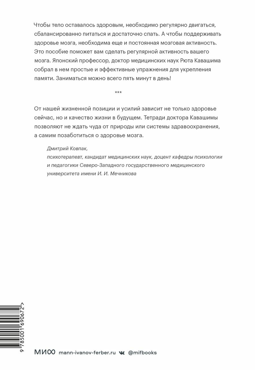 Укрепляем память. Проверенная японская методика для любого возраста (Кавашима Рюта); Манн, Иванов и Фербер, 2022