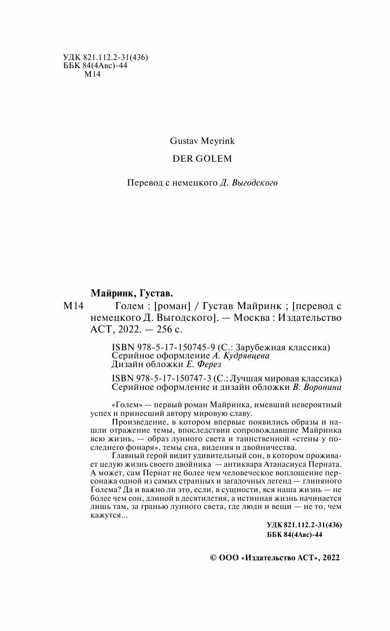 Сервис сравнения цен СкидкаГИД предлагает сравнить цены на товар «Книга: Голем (Густав Майринк); Эксмо, Neoclassic, 2022»